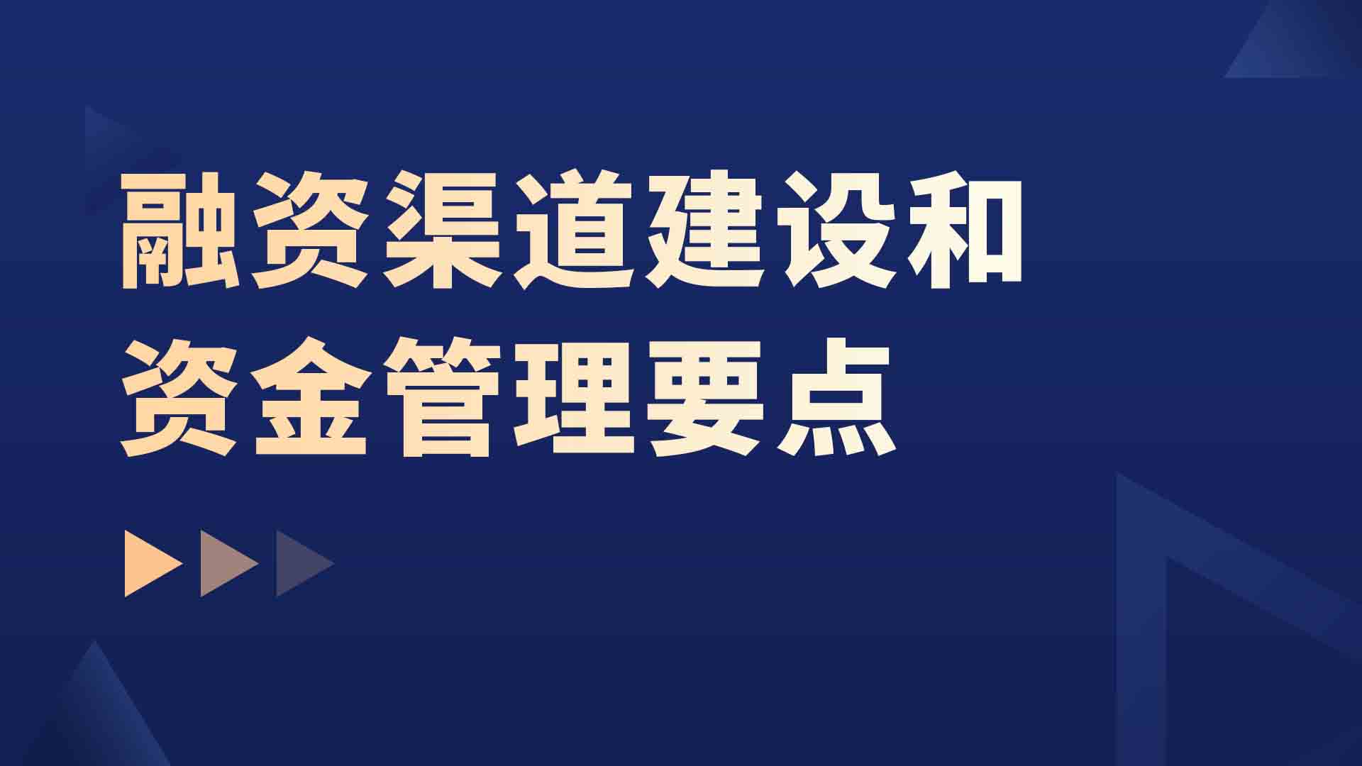 融资渠道建设和资金管理要点