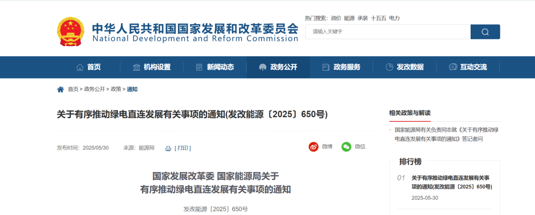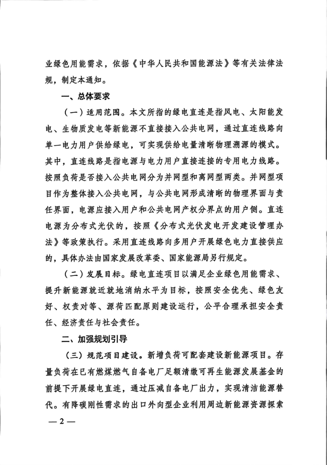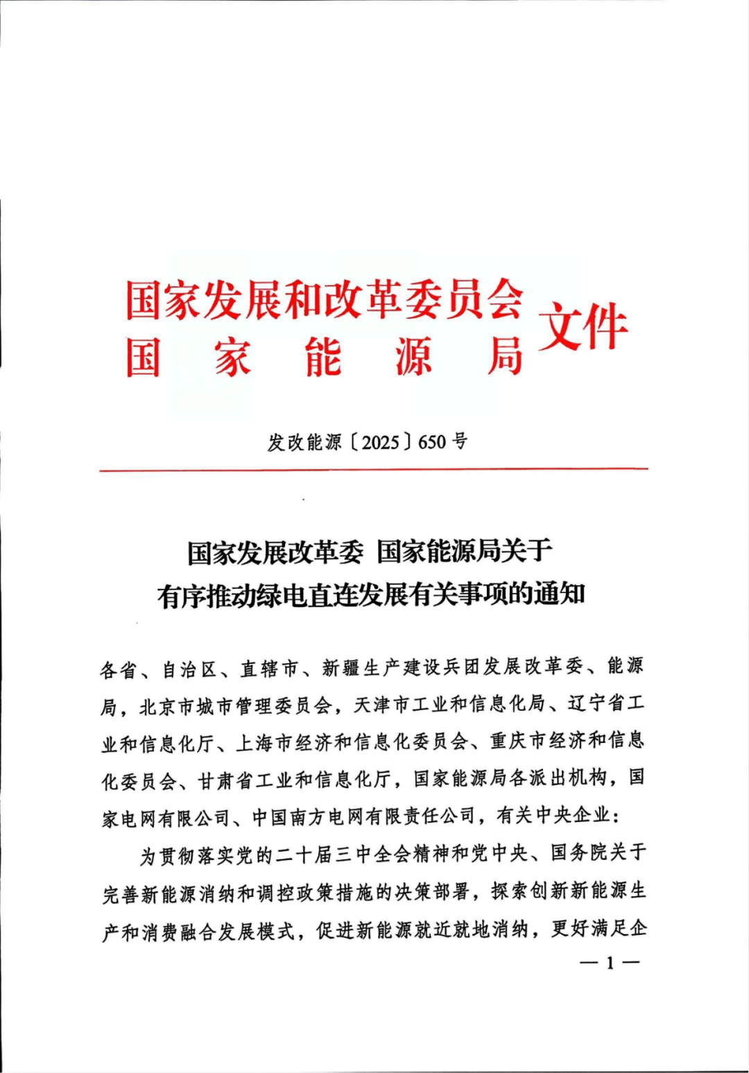 国家发展改革委、国家能源局近日联合发布《关于有序推动绿电直连发展有关事项的通知》(发改能源〔2025〕650号)(以下简称《通知》),首次从国家层面明确“绿电直连”模式的规则框架。该政策通过创新“物理直连+市场化”模式,打通发电侧与用户端点对点供电路径,旨在降本减碳、盘活本地消纳潜力。